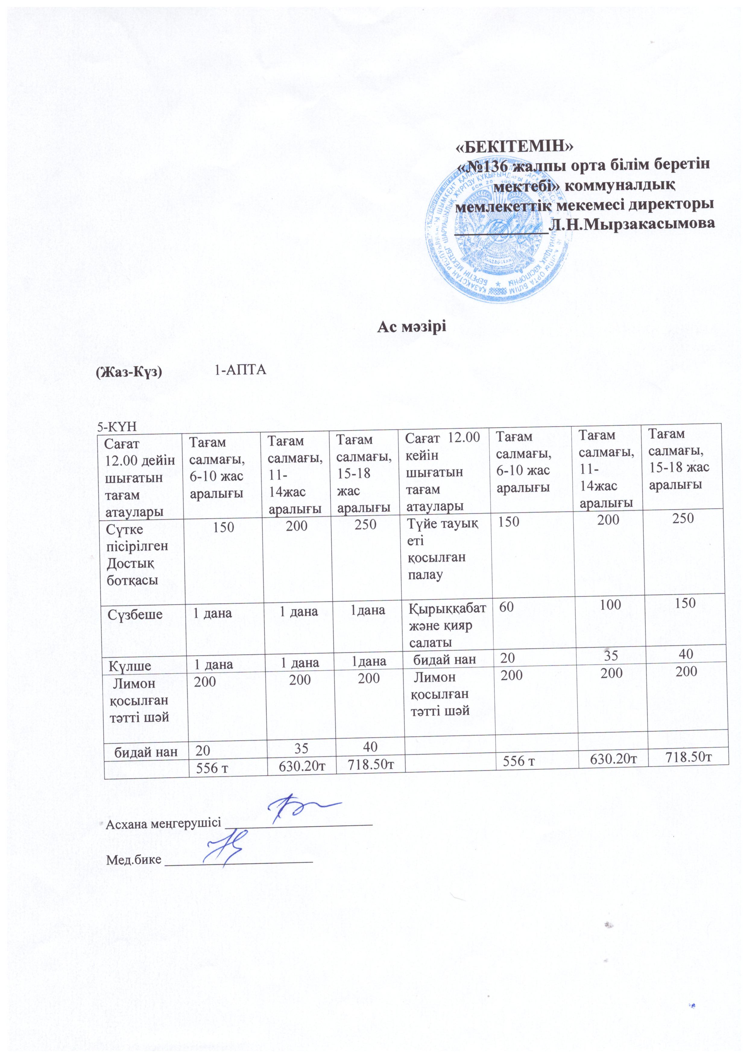 №136 жалпы орта білім беретін мектебі » Ақпарат » " №136 жалпы орта білім беретін мектебі" шаруашылық жүргізу құқығындағы мемлекеттік коммуналдық кәсіпорны асхана менюі 24-2025 оқу жылы