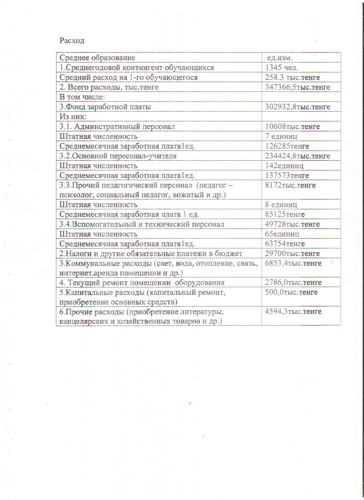 Ашық бюджет 2019 жыл. №110 ЖОББМ.